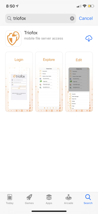Search for Triofox in the App Store to start downloading and installing.