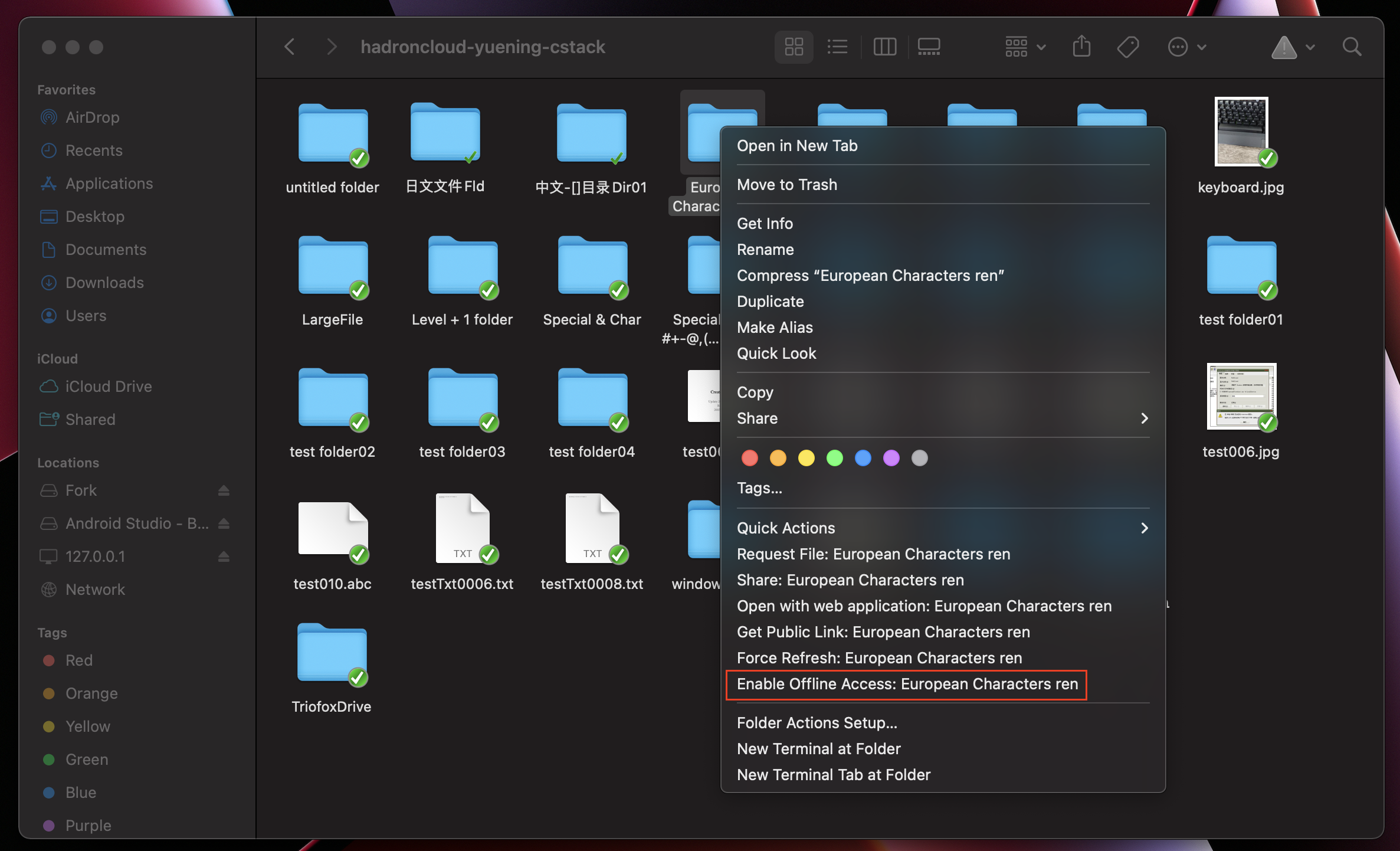 (3) Bring up the Mac Client drive again and you should see an icon overlay. Right-click on any file/folder and the Mac Client context menu will be visible.
